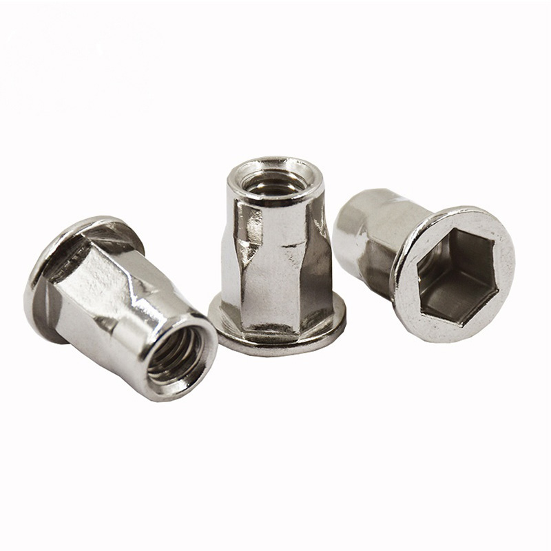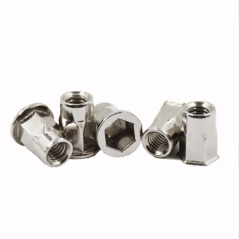 Παραθέτουμε τις κοινές προδιαγραφές για τα Blind Side Hex Rivet Nuts με βάση τα μεγέθη των κλωστών τους—πράγματα όπως M3, M4, M5, M6, M8, M10 και M12 είναι αυτά που θα βρείτε συνήθως. Κατασκευάζουμε και αυτούς τους συνδετήρες από διαφορετικά υλικά, όπως ανθρακούχο χάλυβα, ανοξείδωτο χάλυβα (οι ποιότητες 304 και 316 είναι οι συνήθεις) και αλουμίνιο. Επιλέγουμε το υλικό με βάση το τι χρειάζεται για αντοχή και πόσο καλά πρέπει να αντέχει στη σκουριά. Για παράδειγμα, ένα παξιμάδι από ανθρακούχο χάλυβα μπορεί να έχει κατηγορίες αντοχής όπως 4,8 ή 6,8, ενώ οι ανοξείδωτοι ακολουθούν ένα διαφορετικό σύνολο συστημάτων ποιότητας. Αυτά τα προϊόντα είναι επίσης σχεδιασμένα να τηρούν ορισμένα βιομηχανικά πρότυπα, τα οποία θέτουν τους κανόνες για το μέγεθός τους και το πόσο καλά λειτουργούν—όπως πόση ροπή μπορούν να αντέξουν πριν εκδοθούν.
