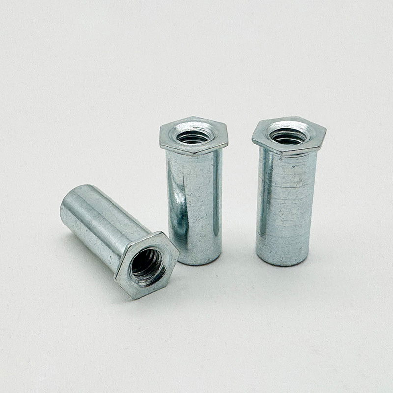 Η στήλη εξάγωνου καρύδι του ανθρακούχου χάλυβα είναι ένα εξειδικευμένο συνδετήρα με εσωτερικά σπειρώματα. Είναι φτιαγμένο για τη δημιουργία σκληρών, φορτίων που φέρουν σπειρώματα σε λεπτά ή εύθραυστα υλικά όπου δεν μπορείτε να χρησιμοποιήσετε τη συγκόλληση. Ενεργώντας ως μόνιμη άγκυρα, έχει ένα εξαγωνικό σώμα που το εμποδίζει να περιστρέφεται κατά τη διάρκεια της εγκατάστασης. Η κοίλη στήλη καταρρέει προς τα έξω όταν χρησιμοποιείτε ένα εργαλείο παξιμάδι πριτσίνου, σχηματίζοντας μια συμπαγή διόγκωση στην τυφλή πλευρά.
