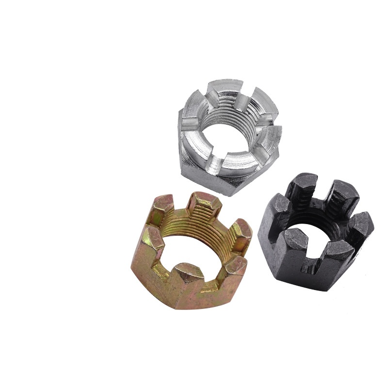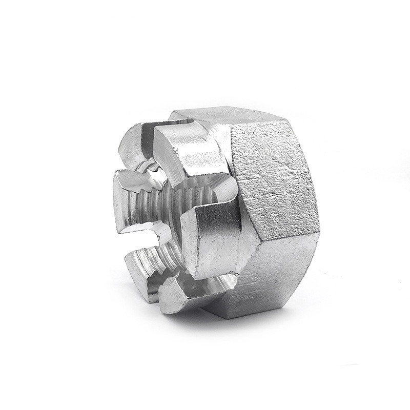 Το καρύδι της κορώνας υψηλής ροπής με υποδοχή είναι ένα ειδικό συνδετήρα που χρησιμοποιείται σε σημαντικές εργασίες όπου πρέπει να βεβαιωθείτε ότι παραμένει κλειδωμένος στη θέση του, ακόμη και με δονήσεις ή αν προσπαθεί να στρέψει. Μοιάζει με ένα κανονικό εξάγωνο καρύδι, αλλά στην κορυφή υπάρχει ένα κυλινδρικό τμήμα στέμματος με μια κουλοχέρη κομμένη σε αυτό. Αυτή η υποδοχή σάς επιτρέπει να το κλειδώσετε χρησιμοποιώντας ένα πείρο ή ένα καλώδιο ασφαλείας. Αυτά τα καρύδια παραμένουν τοποθετημένα όταν τα κανονικά καρύδια μπορεί να είναι χαλαρά, έτσι είναι αρκετά απαραίτητα για σκληρές μηχανικές ρυθμίσεις - ειδικά στην αεροδιαστημική, την παραγωγή αυτοκινήτων και τα βαριά μηχανήματα, όπου η ασφάλεια έχει πραγματικά σημασία.