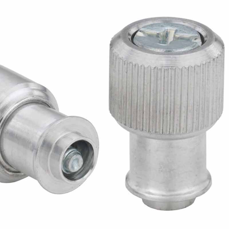 Α: Όταν τα βάζετε, το τραχύς (knurled) μέρος του στελέχους δαγκώνει στο υλικό, ενώ το τμήμα της άνοιξης σκουπίζει για να δημιουργήσει σοβαρή δύναμη σύσφιξης, μιλάμε πάνω από 300 kgf. Αυτή η ψυχρή διαδικασία σχηματίζει μια ισχυρή άρθρωση που χειρίζεται καλά τις δονήσεις. Μπορείτε να παραλείψετε πλήρως τη συγκόλληση και τα καρύδια. Αυτό μειώνει το κόστος και εξοικονομεί χρόνο.
