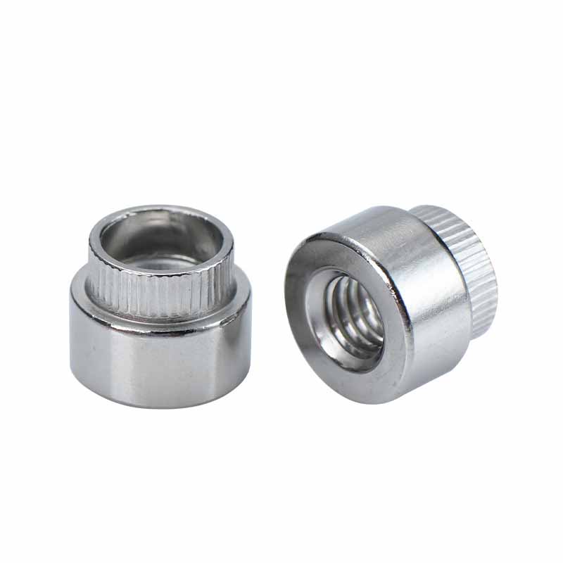 Εν τω μεταξύ, το στρογγυλό μέρος καρύδι έχει κανονικά νήματα μέσα. Η μεγάλη φλάντζα κάνει δύο δουλειές: απλώνει τη δύναμη συμπίεσης, ώστε να μην κόβει το λεπτό υλικό και οι τσιμπήματα (αυτές οι μικρές κορυφογραμμές) δαγκώνουν στην επιφάνεια για να σταματήσουν ολόκληρο το στρογγυλό θάμνο από το να περιστρέφεται όταν γυρίζετε ένα μπουλόνι μέσα ή έξω.