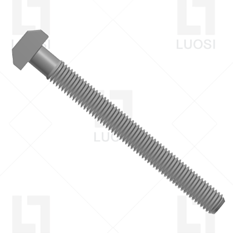 Η κεφαλή Τ και το μισό κοίλο μπουλόνι αγκύρωσης χρησιμοποιούνται για να διορθώσουν τις ράγες στους σκυρόδεμα. Η κεφαλή σχήματος Τ είναι επίπεδη και ευρεία, παρέχοντας μια σταθερή επιφάνεια στήριξης για την πλάκα του πυθμένα. Τα μπουλόνια είναι ελαφρώς λυγισμένα υπό τάση, γεγονός που βοηθά στη διατήρηση της δύναμης σύσφιξης όταν η σιδηροτροχιά βυθίζεται ή κινείται, κάτι που είναι ζωτικής σημασίας για τη σταθερότητα της διαδρομής.